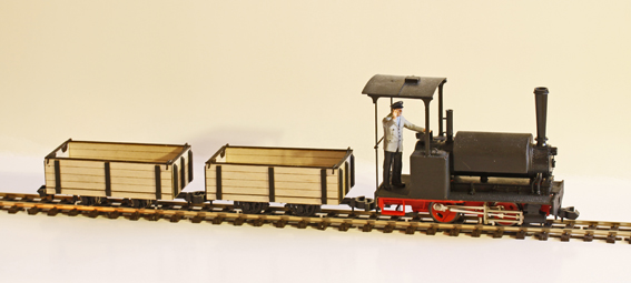Ombyggingssett, bygg om Fleichmann 0-skala smalspor til 1:32 Spor 1 smalspor. Settet inneholder deler for ombygging av lokomotivet og to vogner.